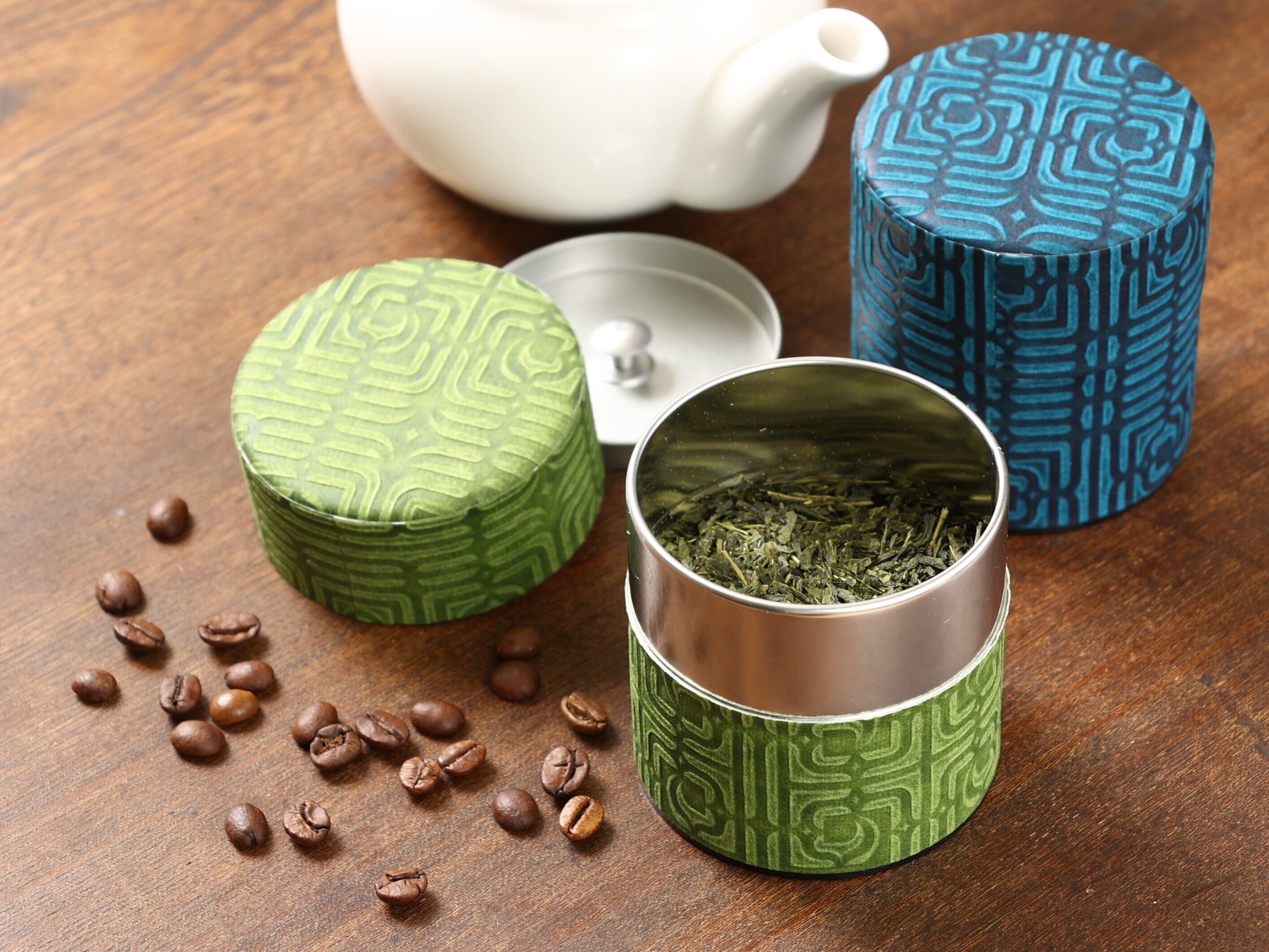 茶缶という名称をしようしていますが、茶葉を入れるほかにも、ショートパスタやコーヒー豆、お菓子などを入れるなど、活用の仕方はお客様次第です。